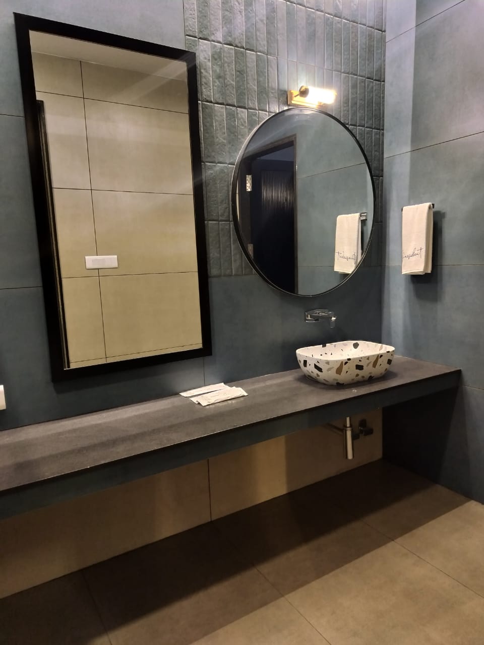 A beautiful wall niche with a painting adds a touch of elegance, enhancing the room’s refined ambiance. The spacious room includes a spacious bathroom, thoughtfully designed for both style and function, providing ample space to relax after a day of exploring.